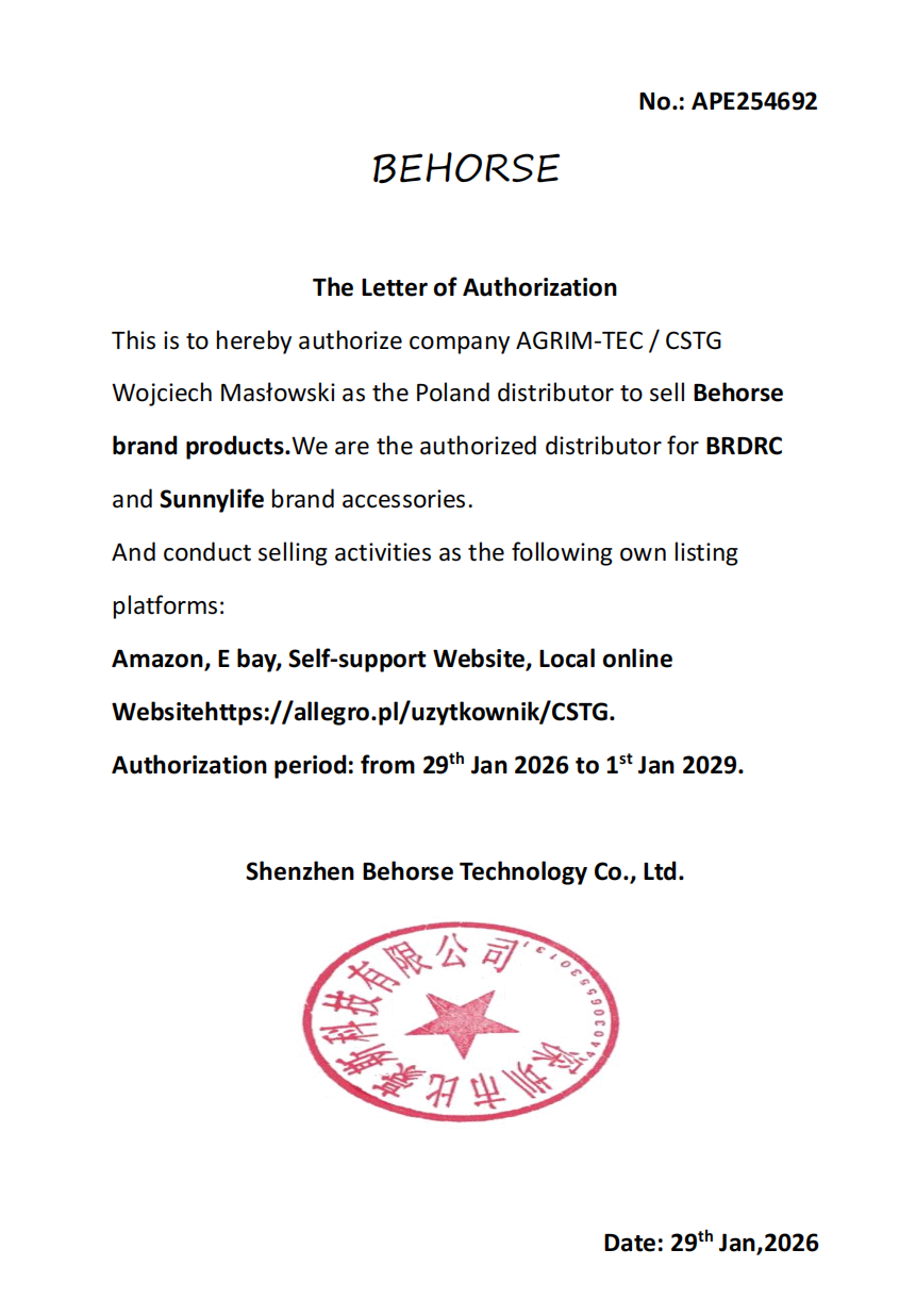 Jako AGRIM-TEC / CSTG jesteśmy oficjalnym i autoryzowanym sprzedawcą produktów marki BRDRC, Sunnylife, Flymile oraz Hongdak